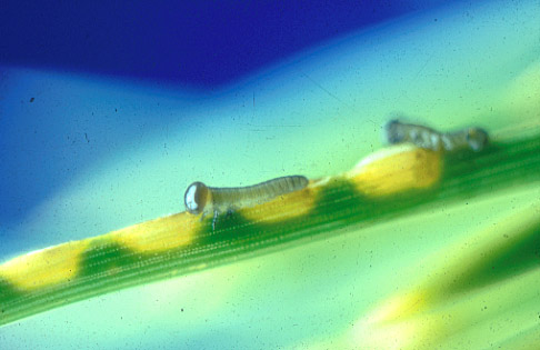 Note how the young larvae remove all but a slender straw when they