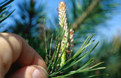 The straw stage is the earliest visible symptom of the European pine
